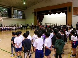 もみじを1年生~3年生がソプラノパート、4年生~6年生がアルトパートに分かれてもみじを歌いました。紅葉の葉っぱをイメージしながら歌うように指導がありました。退場曲は「ゆかいな木きん」で3年生が木琴とリコーダーと鍵盤ハーモニカの楽器を使って演奏してくれました。
