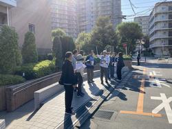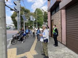本校の保護者、市役所の危機管理室・道路安全課、教育委員会、地区社協、防犯ネットの皆様と学区をAとBの2つのコースに分け、危険個所を調査しました。交通事故の危険性がある車通りの激しい場所や夜になると暗くて一人で歩くのが怖い場所等を実際に歩いて見回ってきました。その後に、収集した情報を基に第四小学校区の安全マップを作成しました。