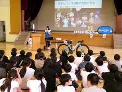 和光市出身で東京オリンピック自転車競技の銀メダリストの梶原悠未選手が第四小学校に来てくれました。夢をつかむために努力することの大切さや実際に自転車に乗りペダルをこいでくれました。最後には児童一人ひとりに本物の銀メダルを触らせてくださいました。