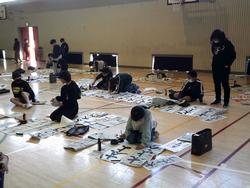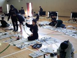 今年度の課題の字は3年生は「こうま」4年生は「太よう」5年生は「新たな心」6年生は「出発の日」でした。2学期から練習を始め、冬休みの課題としても出ていたので、かなり書き込んでいるという感じでした。26日からは教室の廊下に作品を展示する校内書初め展を開催します。子ども達の力作をぜひご覧にいらしてください。