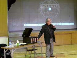 和光市出身の詩人である清水かつらの生涯とその時代についてお話をいただきました。戦争や自然災害、家族との離別など悲しい出来事に翻弄されながらも、児童のことを考え、寄り添う歌を作り続けた清水かつらの生涯をを知ることができました。実際に90年前に使用されていたレコードと蓄音機で名曲「くつがなる」を聞きました。古くから伝わる曲のよさや穏やかで温かい音楽を味わうことができました。