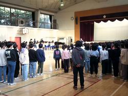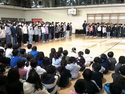 1月の歌「夢の世界を」を低学年がソプラノ、高学年がアルトに分かれて歌いました。高音と低音のハーモニーを奏でていました。