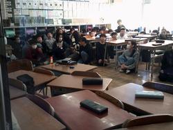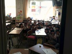 不審者が中央昇降口から1年2組に侵入するという不審者対応の避難訓練でした。訓練の流れとして①不審者侵入確認②廊下に防犯ブザーを投げ、それぞれのクラスに波及させていく。③教室内に机を並べ、バリケードを作る。④ベランダからの避難経路を確認をしました。昨年度までは校庭に避難していましたが、今年度からバリケードを作って教室内で身を守ることとしました。