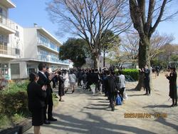 卒業証書授与式後に、教職員と保護者が花道を作り、卒業生を第四小学校から送り出しました第四小学校の先生方や在校生は中学校に進学し、大きな飛躍を遂げるみなさんを心から応援しています。。